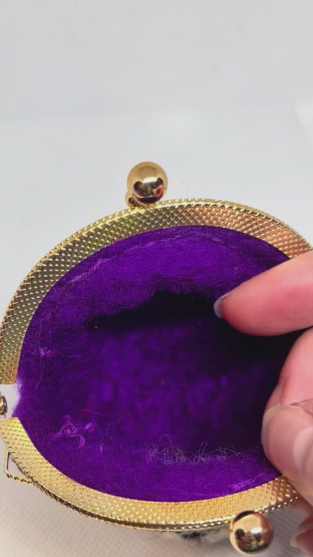 Made from 100% pure wool with an 8.5cm diameter coin purse frame, in Vancouver, BC.