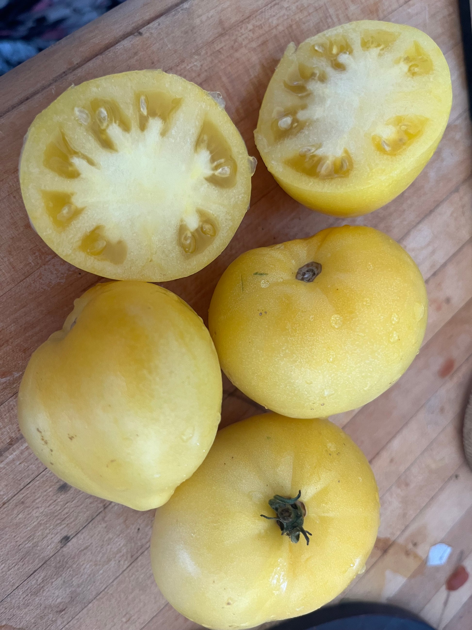 OP Annual, determinate tomato gets 2’-3’ tall - perfect for containers and small spaces. Yellow 3-12oz heart shaped fruit with a meaty texture and sweet/tart flavour. Part of the dwarf tomato project! Grown at Green Zebra Farm, Burnaby, BC