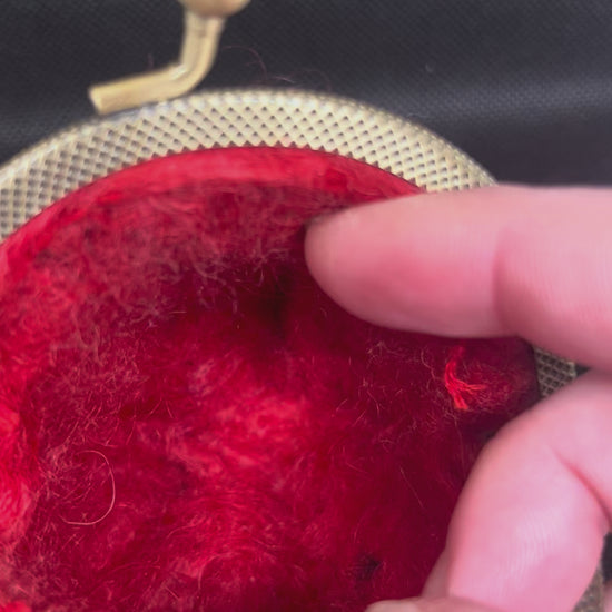 100% wool, wet felted body, needle felted details, hand stitched 8.5cm coin purse closure, approximate height 8.5cm.
