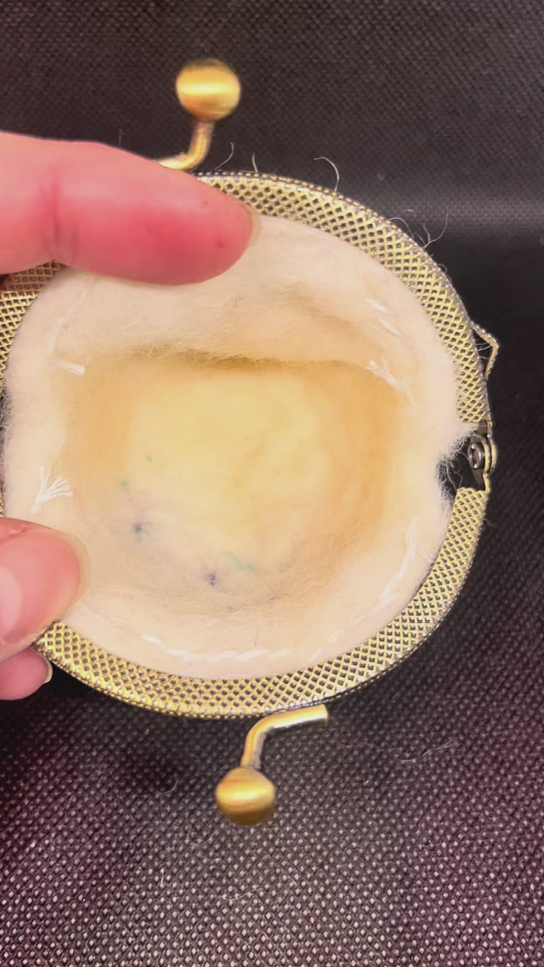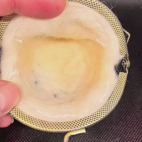 100% wool, wet felted body, needle felted details, hand stitched 8.5cm coin purse closure. Approximate height 7cm.