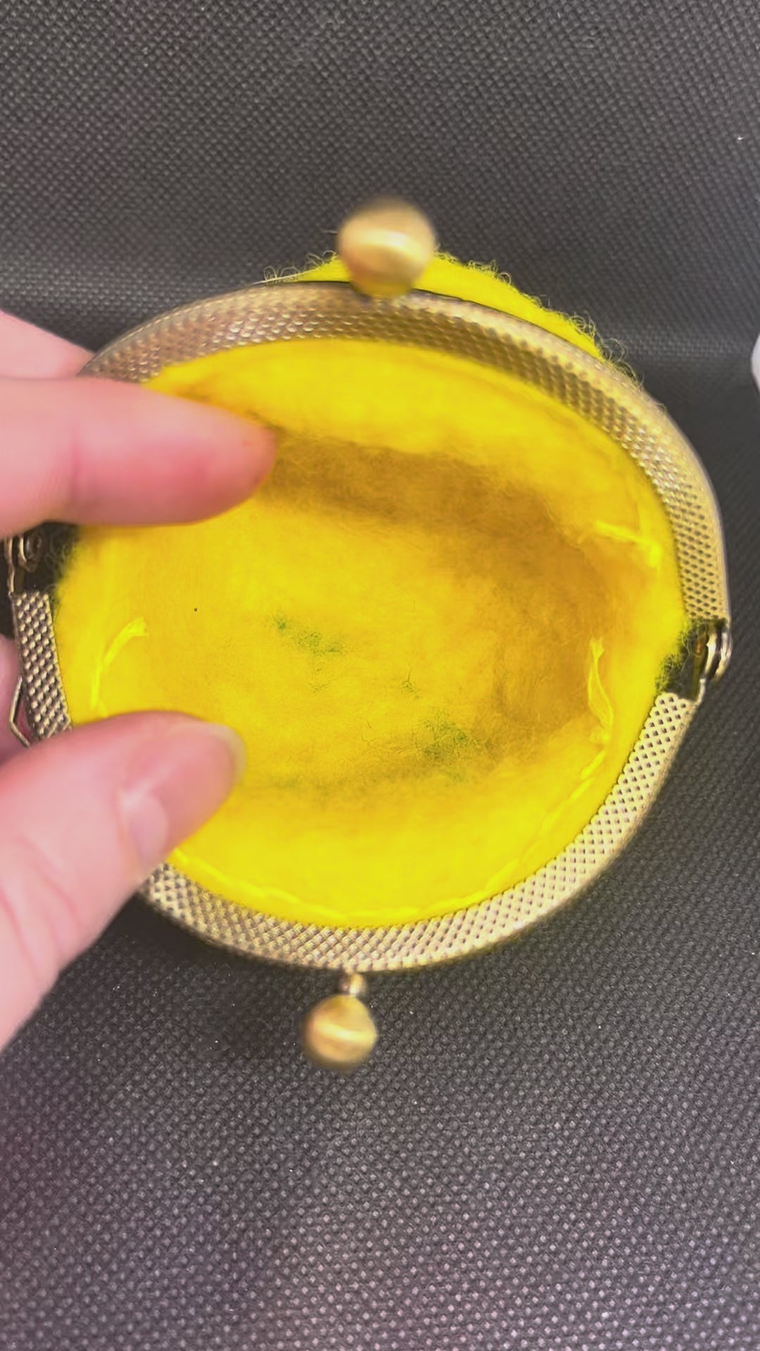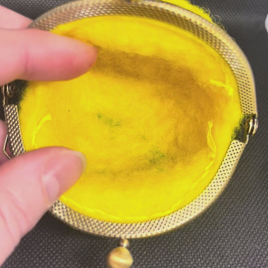 100% wool, wet felted body, needle felted details, hand stitched 8.5cm coin purse closure, approximate height 8.5cm.
