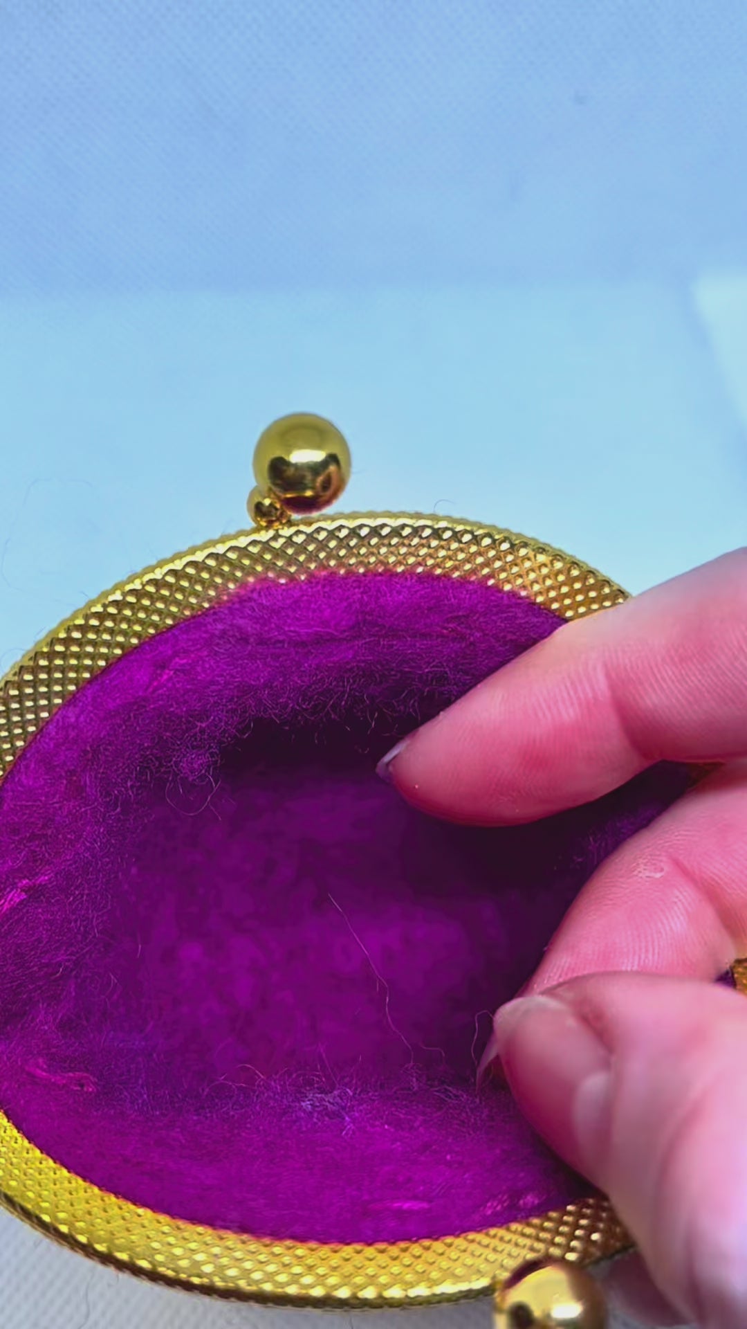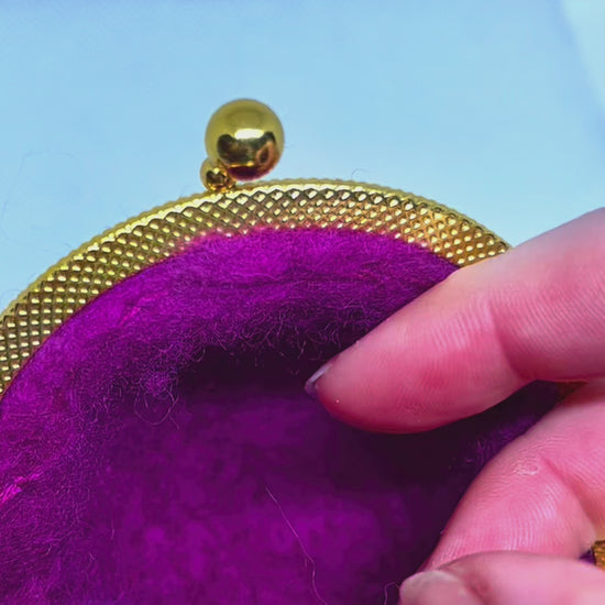 Made from 100% pure wool with an 8.5cm diameter coin purse frame, in Vancouver, BC.