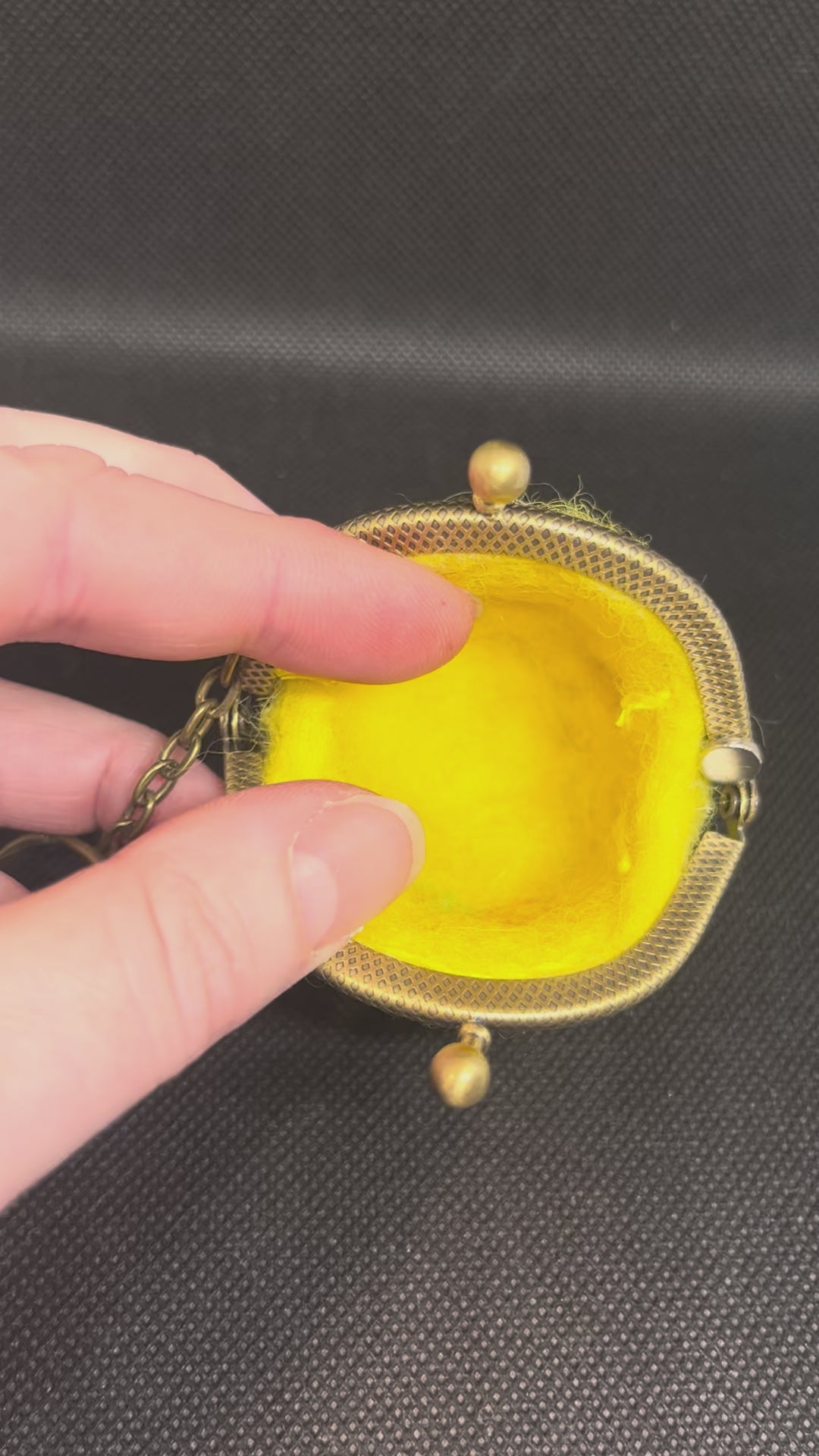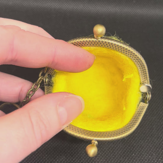 100% wool, wet felted body, needle felted details, hand stitched 6.5cm coin purse closure. Approximate height 6.5cm.