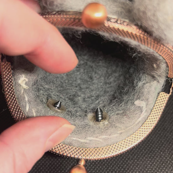 100% wool, wet felted body, needle felted details, hand stitched 8.5cm coin purse closure. Approximate height 8.5cm. Extra forest spirits sold separately 🍃